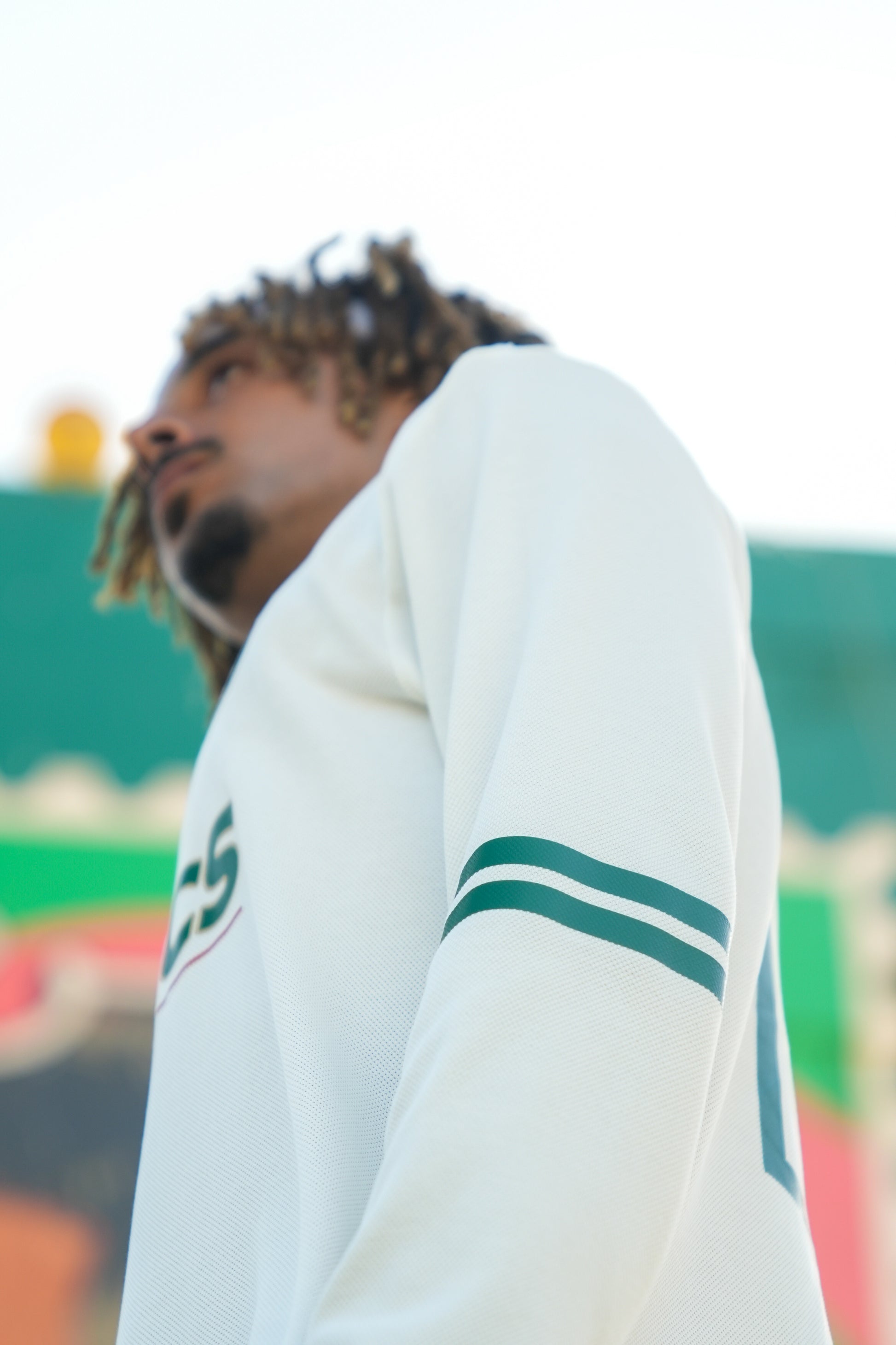 Redécouvrez l’élégance du football d’antan avec ce pull manches longues en piqué blanc. Minimaliste, raffiné et intemporel, il célèbre les couleurs de l’Algérie avec sobriété et style. Idéal pour afficher soutien et attachement aux couleurs de ton pays dans un look authentique et vintage.